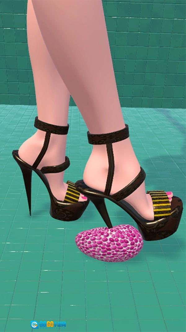 在这个3D风格的游戏界面上,玩家需要根据任务要求踩着高跟鞋碾压各种东西。