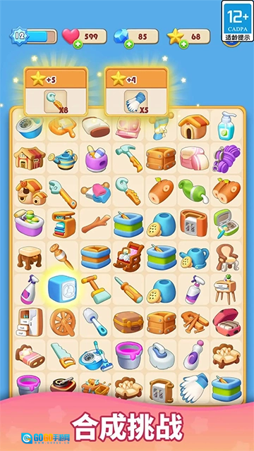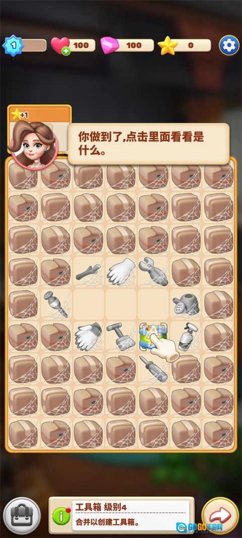 在拼图游戏板上,把两个相同元素进行合并,从而创造出全新的物品与工具,借助这些新物品和工具来对客厅、卧室、厨房、花园以及温室等各类房间展开翻新工作。