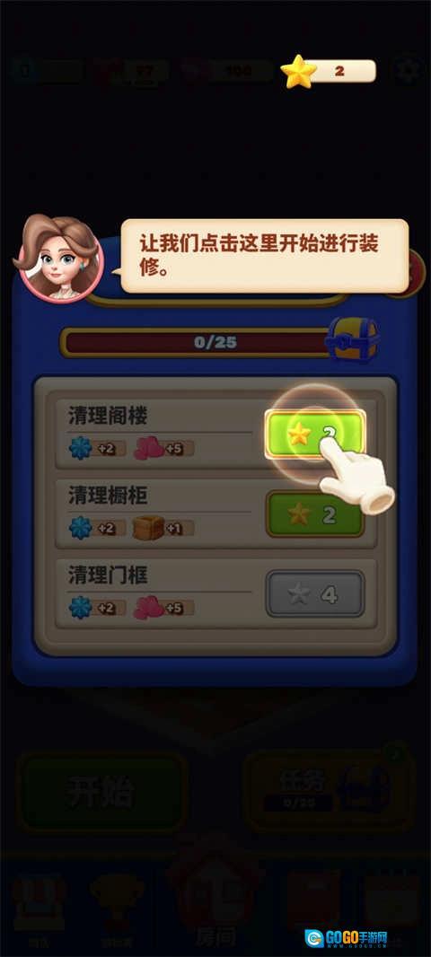6、每当完成任务,就能获取奖励黄星,这些黄星可用于房间的装修与升级。