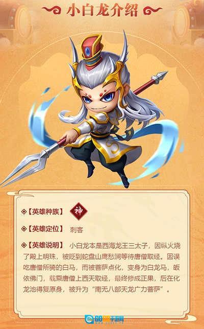 小白龙原是西海龙王的三太子,因失手纵火烧毁了殿上的明珠,被贬至蛇盘山鹰愁涧等候唐僧西天取经。后来他误食了唐僧所骑的白马,经菩萨点化后皈依佛门,化身为白龙马,一路驮着唐僧西行取经。最终功德圆满修成正果,在化龙池中恢复了原本的龙身,被封为“南无八部天龙广力菩萨”。