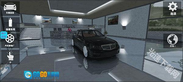 1、进入游戏后,你可以在此处对车辆进行车型改装、颜色调整和维修操作,还能用手打开车辆,点击右侧的“开车”按钮即可开始游戏。