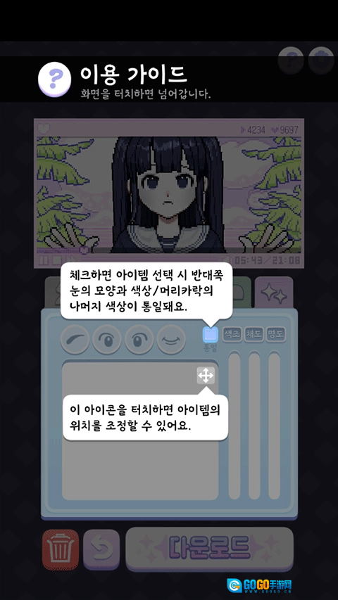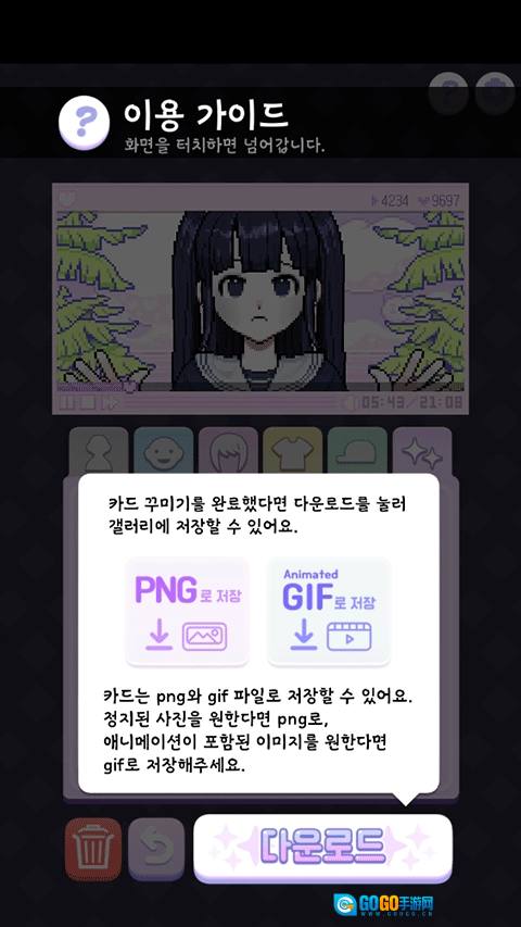 2.简单易上手的装扮玩法,搭配十分精美华丽的像素风格,还支持自由保存图片。