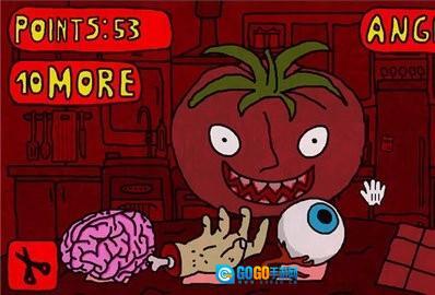 3、讲了这么多,接下来你就要进入Boss战了。用毒药把西红柿毒死之后,它会说你赢了,然后身体就会垮掉,场景会重新开启(要是愤怒值满十的话,它就会冲到屏幕前把你杀死,接着退出游戏,把你引导到一个网站。那个网站其实就是一张图片,上面写着“谢谢你的帮助”。(对了,要是想再次挑战Boss,还是得用毒药对付它。当然啦,要是你之前在店里买了刀,也能用刀去切西红柿。)