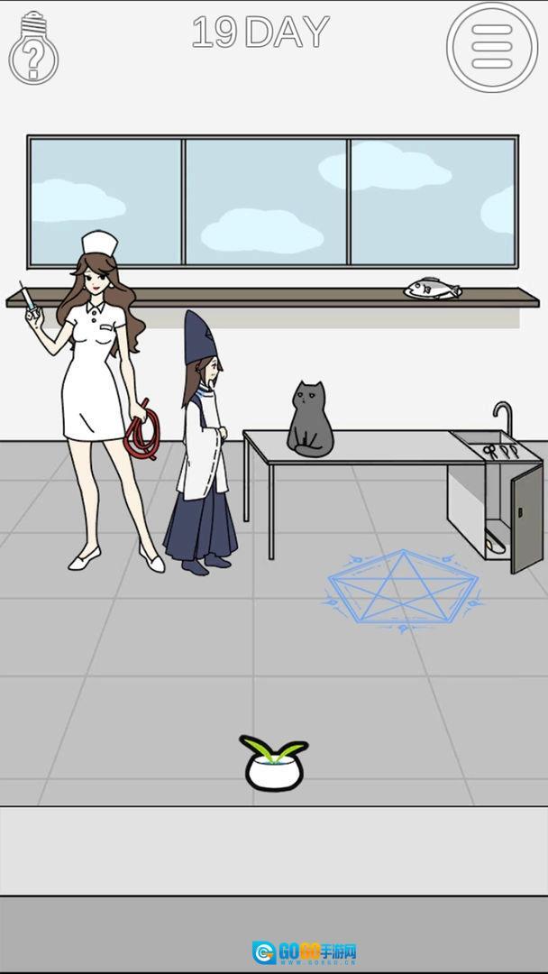 进入左侧的场景后,将猫粮放置到碗中。此时不要立刻点击猫咪,稍作等待,等它把碗里的猫粮吃完,再点击猫咪就能顺利通关了。