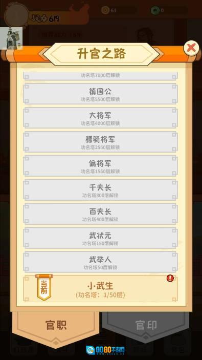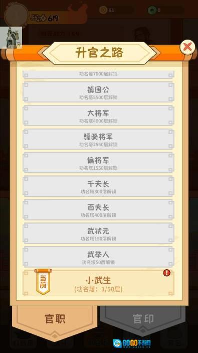3、运用最厉害的武器去挑战功名塔,战胜强劲的对手以获取更高级别的官职