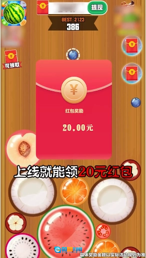 小芝麻大西瓜赚钱版,这是一款有趣的合并类赚钱游戏,玩家上线即可领取20元红包。通过指尖点击参与趣味闯关,在水果合成的过程中不断提升积分,积分越高收益红包就越多,感兴趣的玩家快来体验吧。