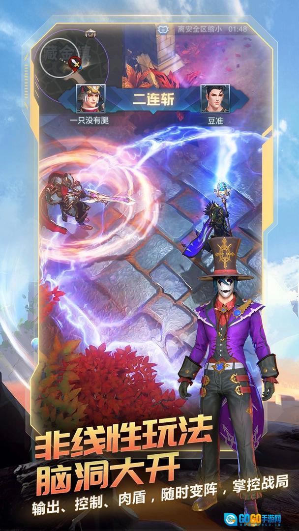 MOBA与吃鸡的创新融合,2.5D上帝视角助你掌控全局。经典的战术思路,混搭的玩法模式,简单易上手的操作——左手摇杆操控角色移动,右手摇杆释放技能与道具,零门槛快速入门,新手也能轻松体验吃鸡乐趣。