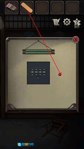 接下来点击墙后方的壁画,按下旁边的按钮,然后用创可贴去粘旁边的按钮。