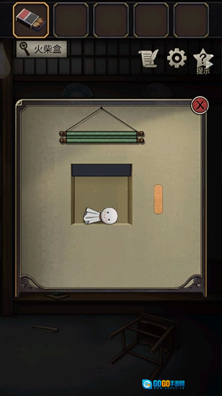 回到主场景后向右切换视角,能在地上板凳的底部找到创可贴这个物品。