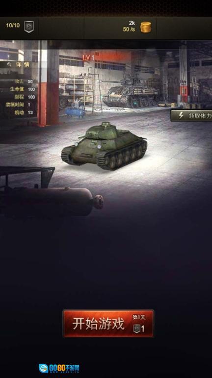 2、点击“开始游戏”进入战斗环节,点击目标即可指挥坦克发起射击,通过滑动屏幕来移动并调整方位,完成剧情任务后即可推进战役进程。