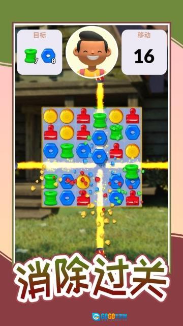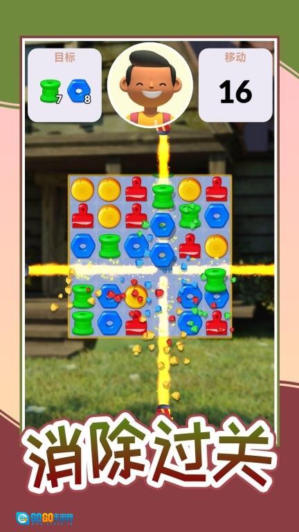 1、进行消除类游戏时,通过交换相邻方块让同色方块连成一线来完成消除,以此获得星星奖励,为后续的建造任务积累资源。