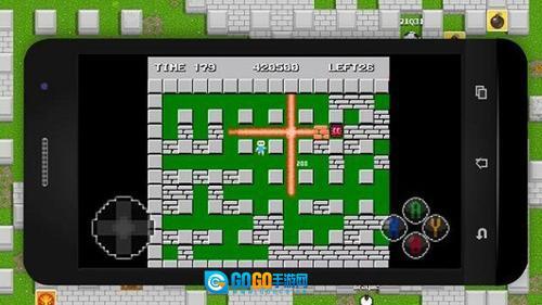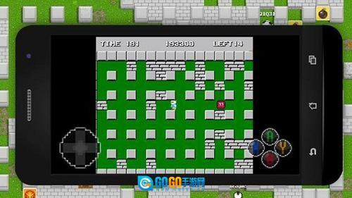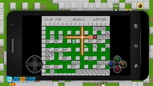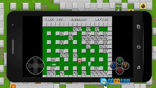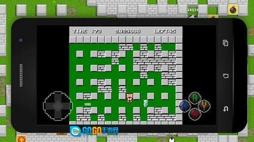 2、游戏界面采用迷宫式设计,包含规则排列的石墙与形态不规则的砖墙,场景中分布着各式各样的怪物。随着等级提升,可操控主角放置炸弹的怪物种类会增多,炸弹能够炸毁砖墙并消灭怪物。