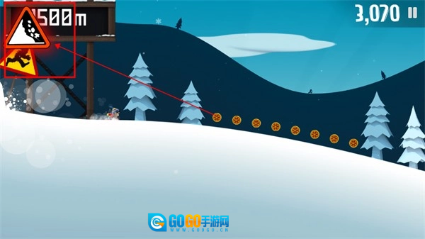 要是右上角的雪崩标志剧烈晃动并不断闪烁,那就意味着雪崩即将追上你了。