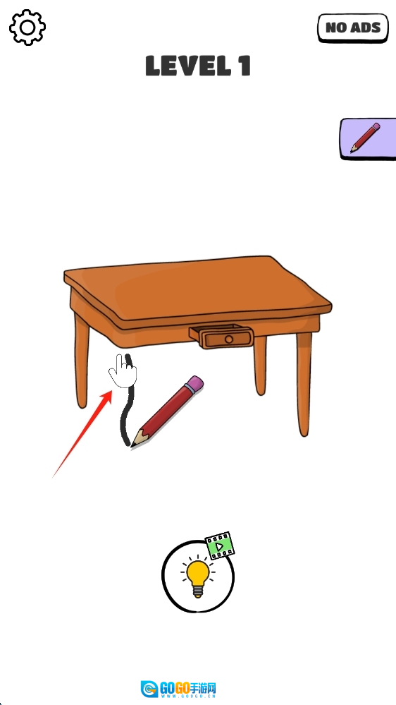 1、进入第一关界面后,根据界面提示,把铅笔准确移动到指定的位置,以此完成该关卡的任务,之后点击划线按钮。