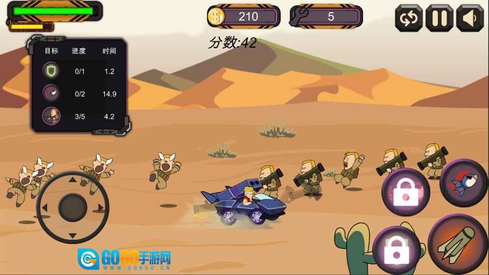 这是一款赛车题材的游戏,在游戏里,你将驾驭一辆战车,于敌人之中肆意穿梭、横冲直撞。每当撞击敌人,就能积攒怒气,待怒气值蓄满,便会自动触发冲锋技能。在此过程中,你还得留意躲避敌人发射的炮弹、导弹,以及布置的地雷和射出的子弹等各类攻击。而且,每一辆战车都配备了独特的技能,战车与主角之间能够自由搭配组合。游戏拥有丰富多元的元素,关卡绝不重复,炮车声响隆隆,马达轰鸣不止,一场畅快淋漓的战斗即将拉开帷幕!
