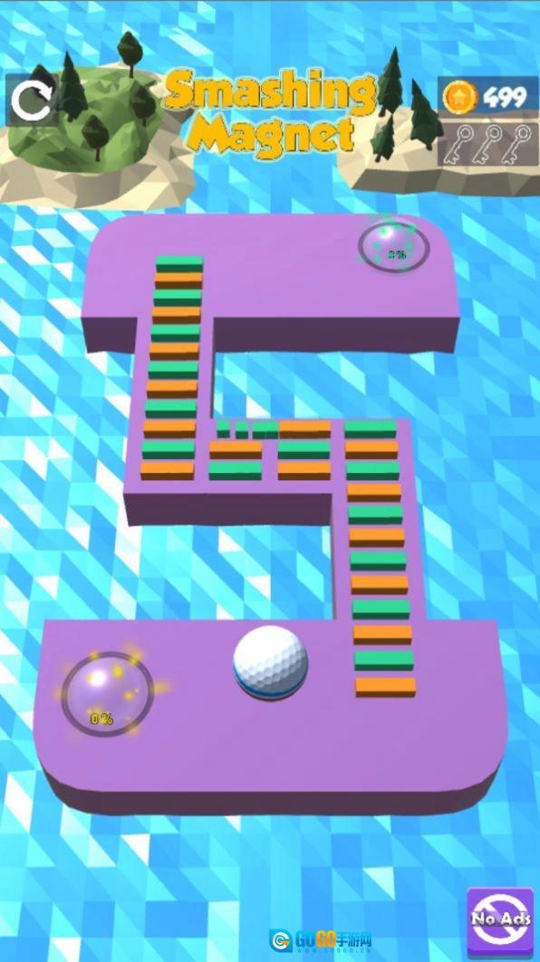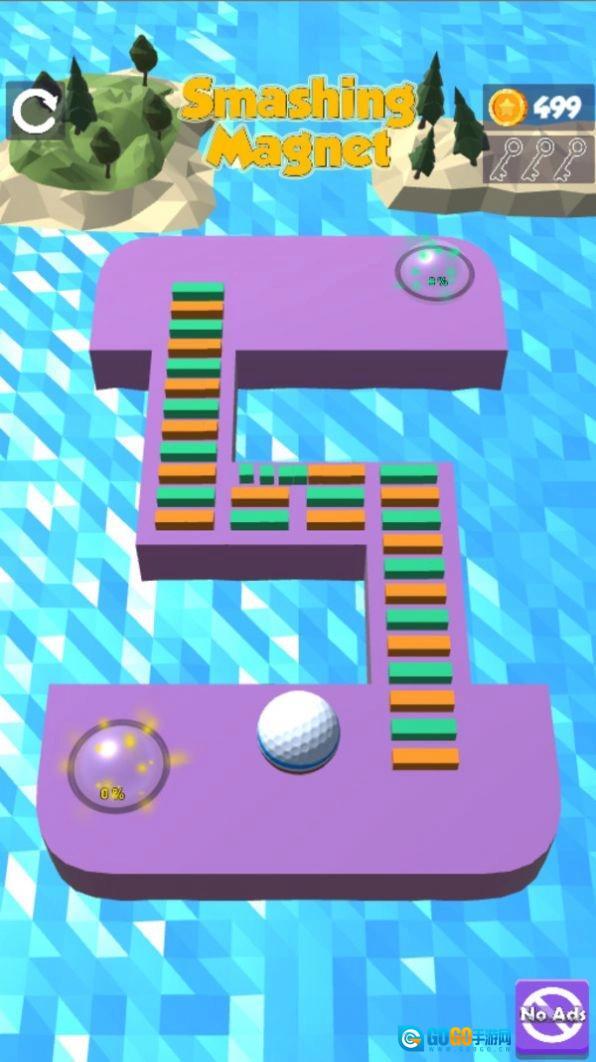 磁铁粉碎游戏玩起来超解压,在一座座风格各异的小岛上有很多的机关,这些磁铁铺满了道路,现在只有将其毁坏才能继续前进,要达到目的地就要通过重重阻碍,要注意的是千万不能掉入海中,否则的话挑战将会直接结束,这里还有很多的道具出售,如果有需要的话就自己去商店里购买吧!