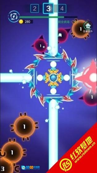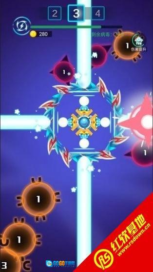 5.飞碟与病毒展开了一场激烈的战斗,成功消灭了所有病毒,迅速从包围圈中突围,最终赢得了胜利。