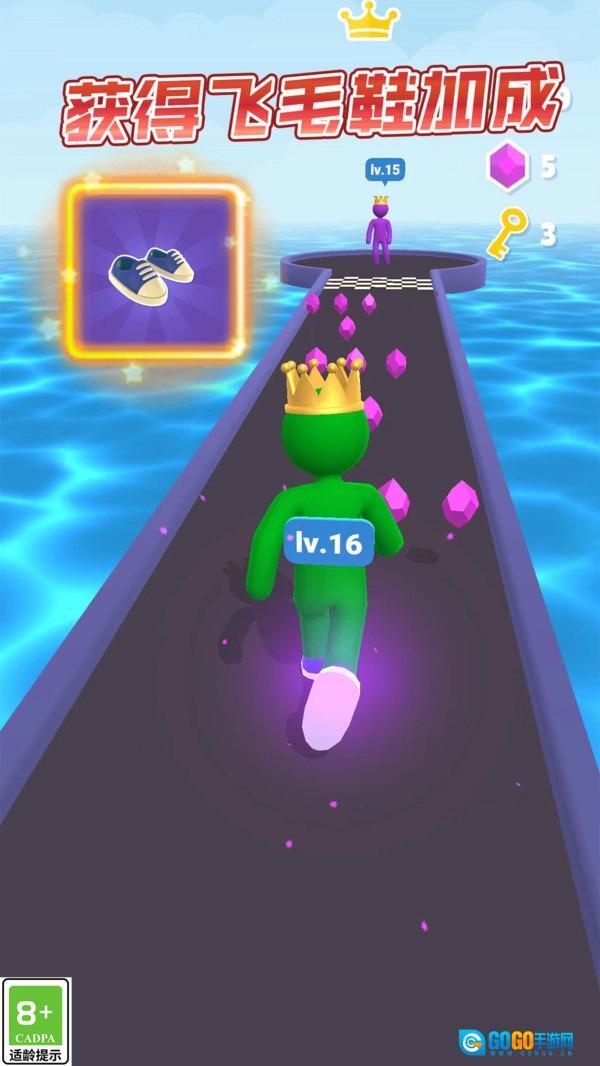 1、跑酷:经过滑动屏幕操控大哥在不同的场景中快速奔驰,同时躲避各种障碍物和圈套。