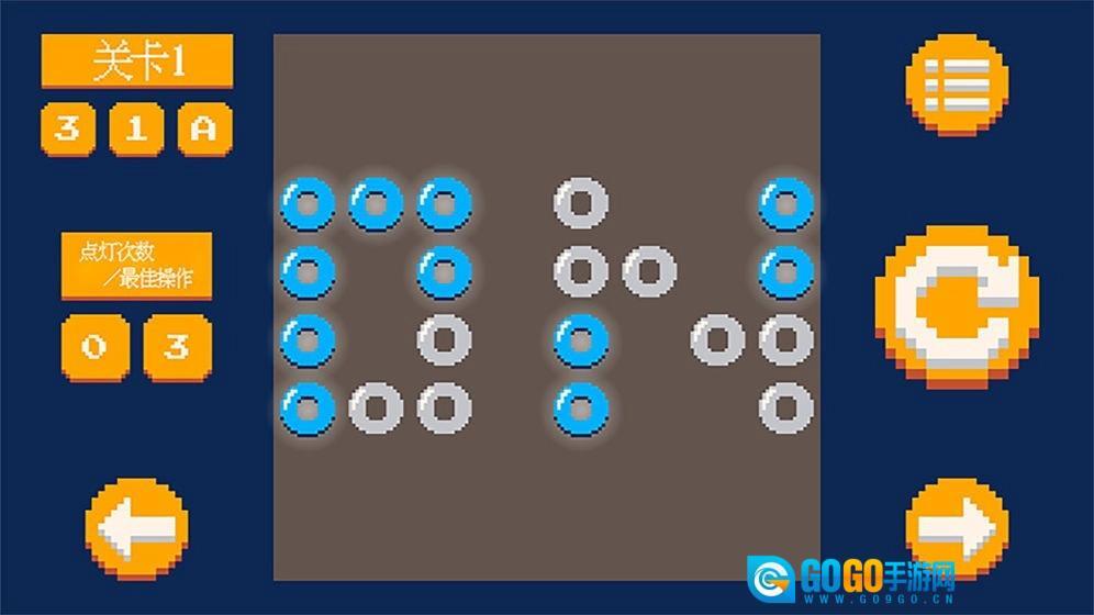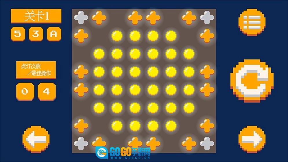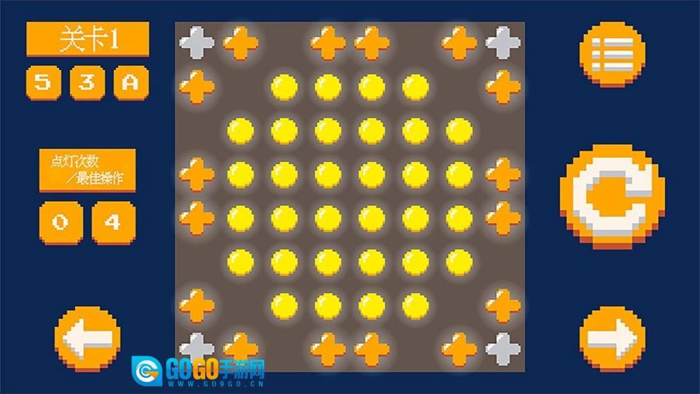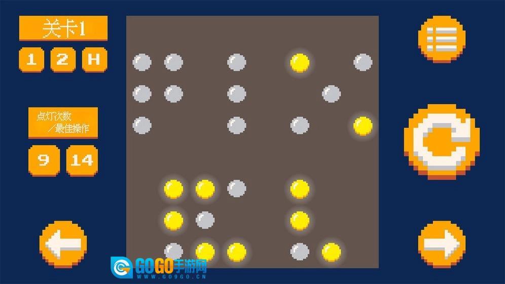 3.简单的规则和无限的创造力。找到游戏的逻辑和规则并应用它们。使用最少的步骤打开灯板上的所有小灯即可完成游戏级别。