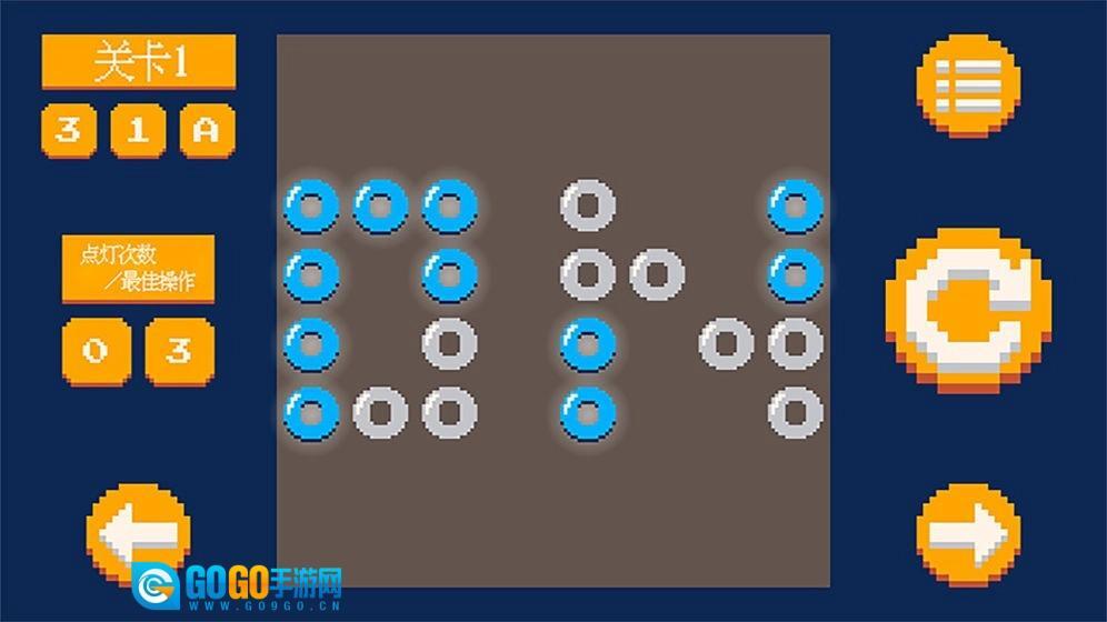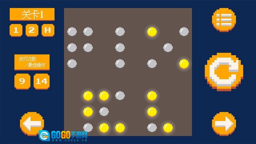 使用足够少的步骤即可打开灯板上的所有小灯以完成游戏级别。