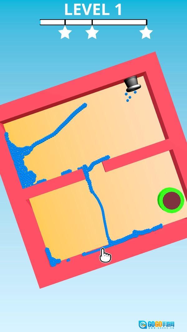 游戏中玩家在每关都要想尽方法把关卡中规定的水进行移动,来挑战迷宫任务。
