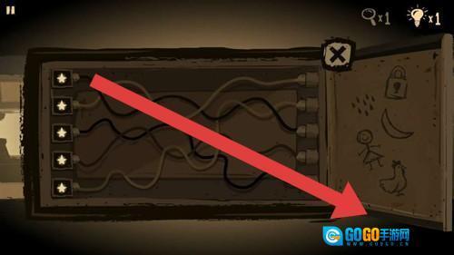 2、配电箱解谜(第二张),记住门内侧的图案(月亮、鸡),按照顺序梳理电线;试错时不用慌张,重置按钮在角落位置。