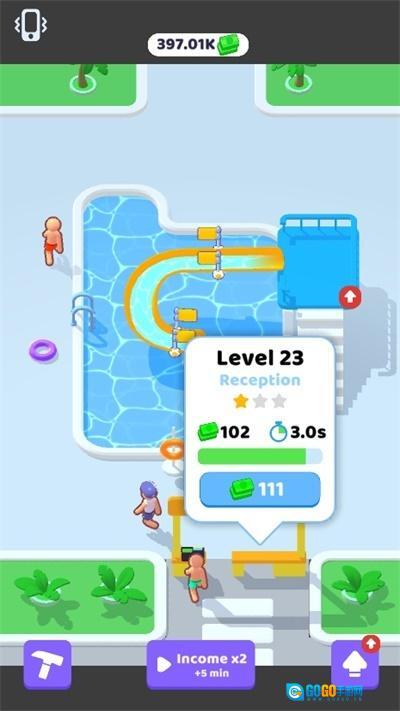 我的水上乐园是一款简单又有趣的休闲游戏,在这里你可以打造一个超好玩的水上乐园,还能自由玩耍。在炎热的天气里,尽情享受清凉的乐趣吧!用各式各样的设施来建造乐园,不断吸引更多游客,这样就能赚到钱啦。