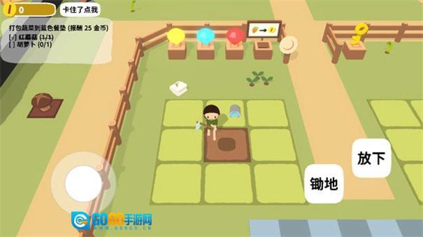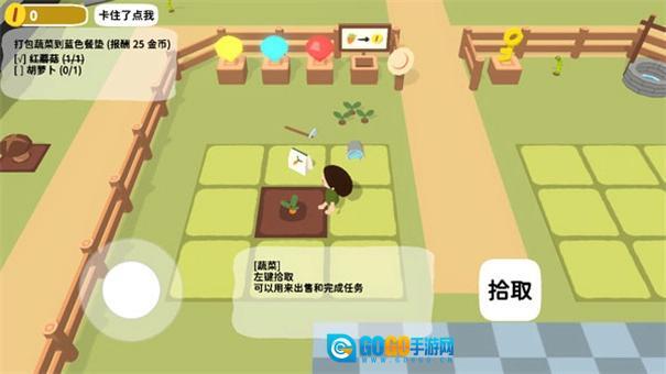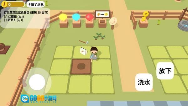 等胡萝卜成熟后,把它们拾起来放到蓝色桌垫上,这样就能完成第一个任务,还能拿到金币奖励。