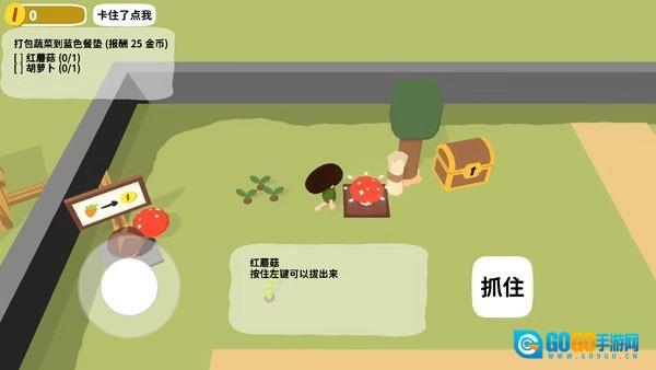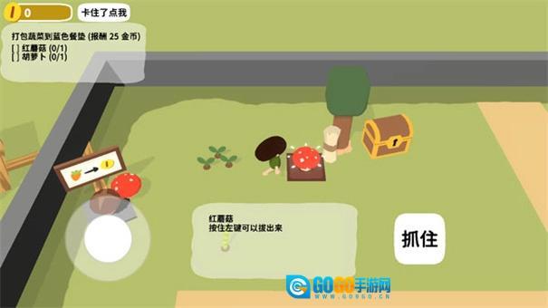 玩家打开游戏后,首先要按照左上方的任务提示,把一个红蘑菇拾取起来并放到蓝色桌垫上。