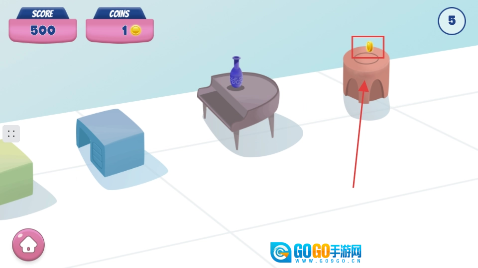 当物体上设有金币奖励时,只要成功落在该物体上即可获取,条件简单且容易达成。