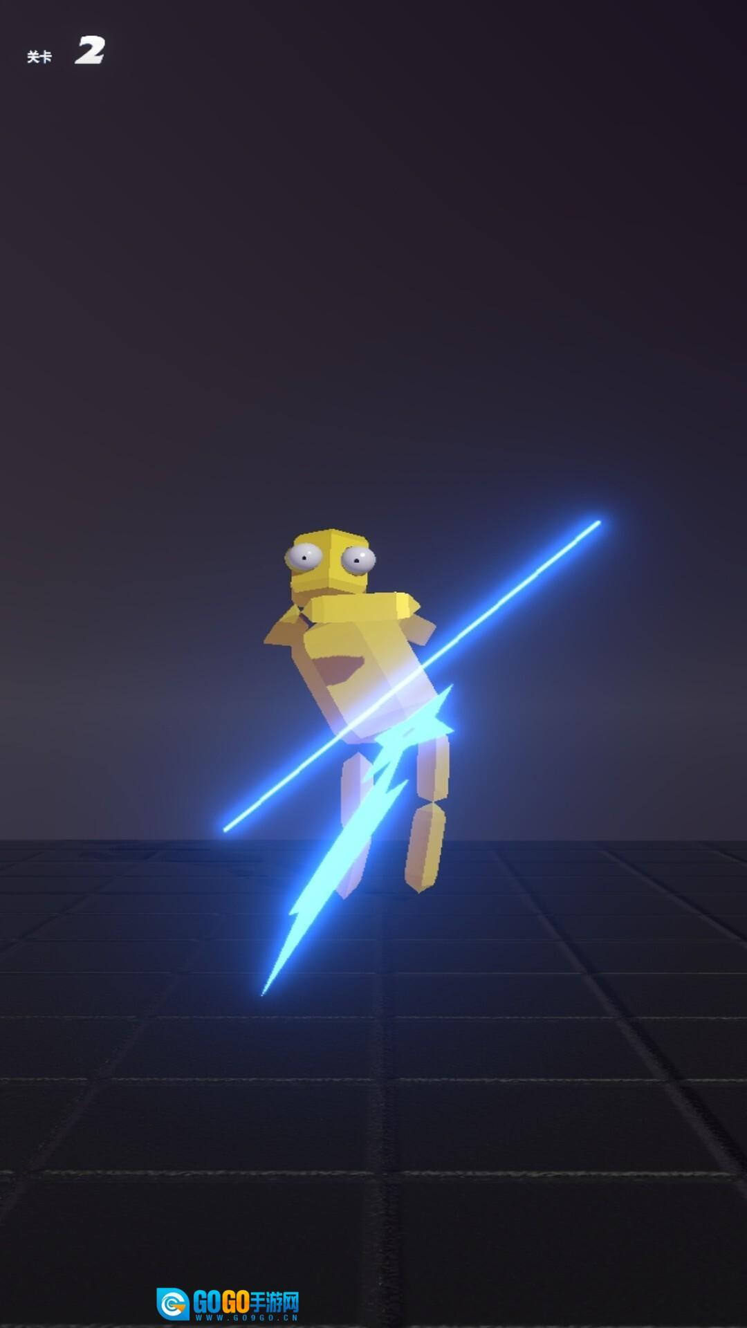 1. 这是一款以高速滑动为核心玩法的动作闯关游戏,玩家需要发射飞镖来攻克前方由黄色布娃娃机器人把守的关卡。