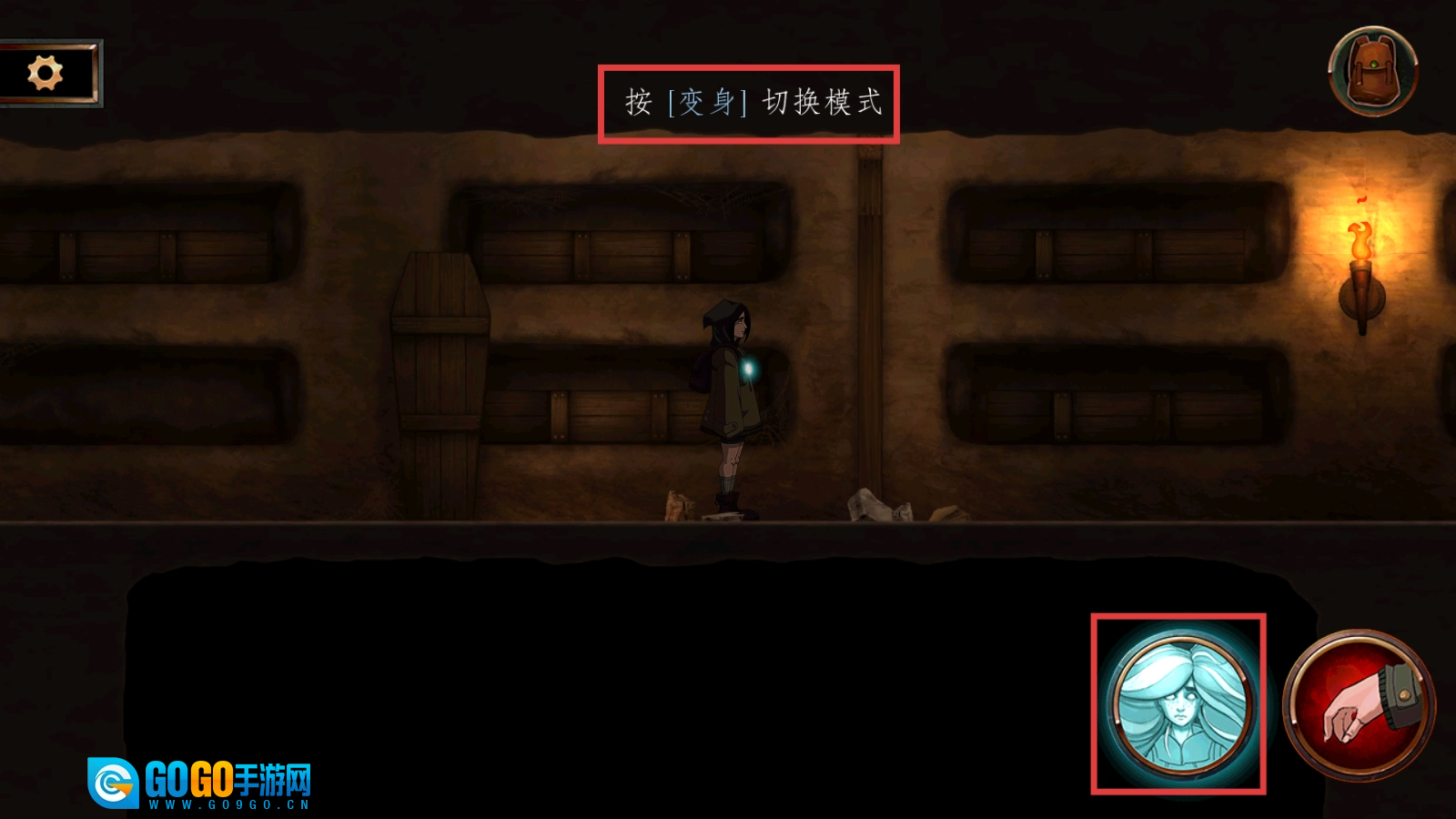 到新场景中,出现【按变身切换模式】提示,点击右下角对应变身按钮,切换灵魂出窍模式。