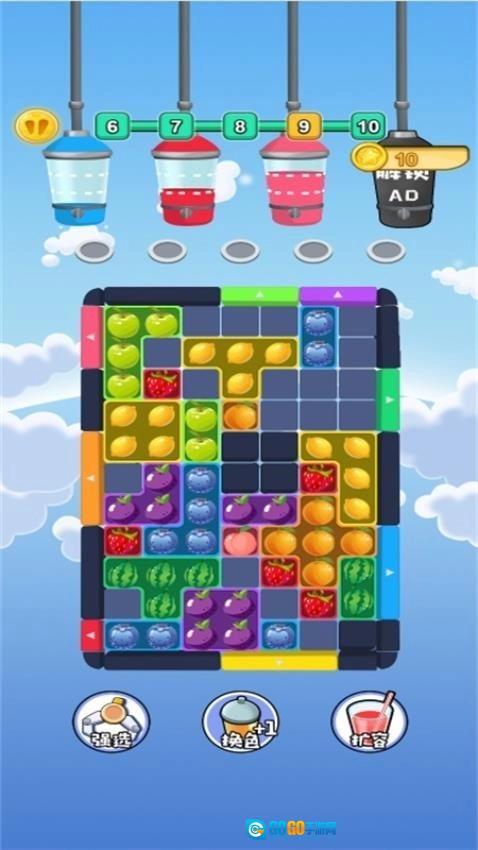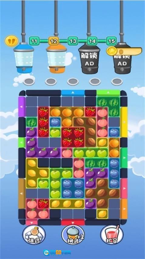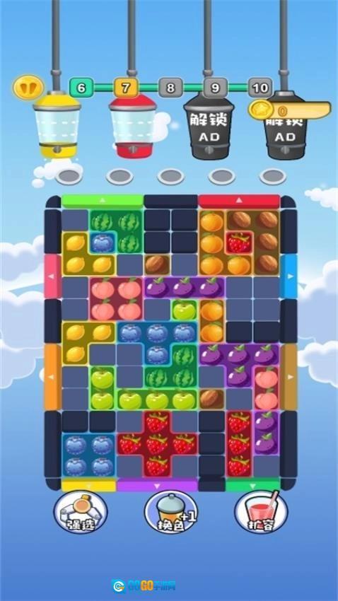 道具辅助机制:闯关过程中可获得道具奖励,用于清除障碍物或临时扩大榨汁机容量,帮助突破困境,平衡游戏难度。