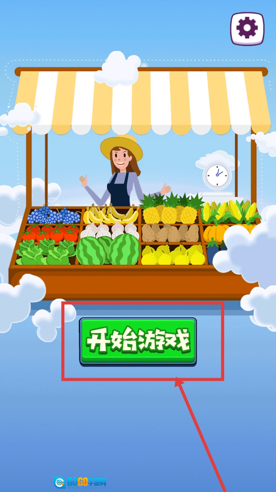 点击【开始游戏】,进入关卡,准备按指引操作水果滑动。