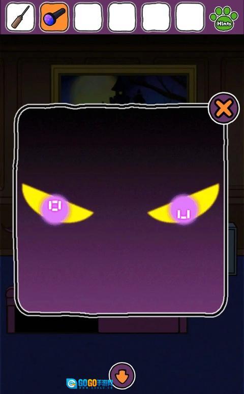 对城堡里所有蝙蝠的眼睛使用手电,获得提示黄 8、红3、绿4、紫2。