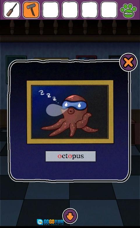 进入下层后直接向右,到达全是书的房间,打开书柜底部,获得画着章鱼的陶罐。