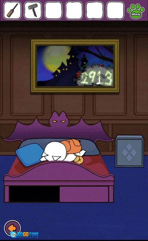 前往第二层有床的房间,用刮刀刮去画上的玫瑰,获得提示2913。
