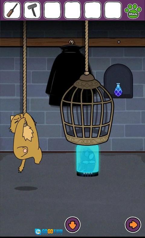 前往密室,用小刀割开棕猫身上的绳子,返回密室第一个房间,点击笼子,输入8342,打开获得植物。