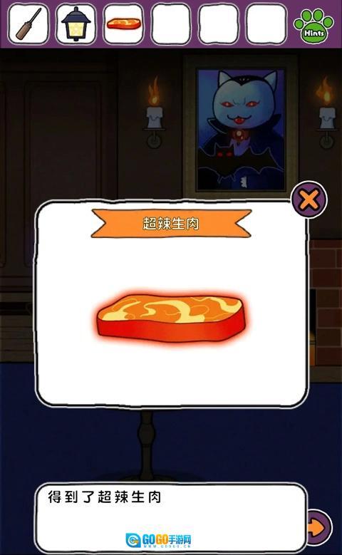 对餐桌里的肉使用魔鬼辣椒酱,获得超辣的肉,把肉给乌鸦,乌鸦飞走。