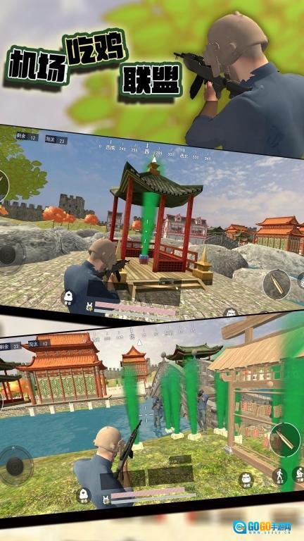 《机场吃鸡联盟》是一款以国风为基调的吃鸡题材射击游戏。玩家将操控角色在古色古香的庭院建筑间灵活穿梭,落地后需迅速搜刮有限的物资资源,通过获取枪械、护甲等装备武装自身。游戏搭载真实物理引擎与精准伤害系统,让射击技巧与战术操作成为左右战局胜负的关键。在紧张的倒计时机制下,你将与其他玩家展开策略博弈与枪法对决,时刻躲避危险区域,逐一淘汰对手,最终成为笑到最后的“吃鸡”强者,沉浸式体验国风竞技带来的热血刺激。