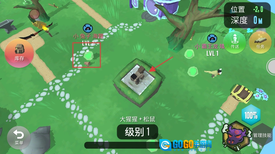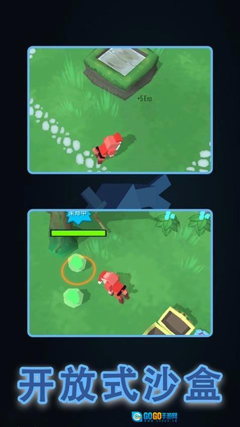 跟着任务,靠近绿色小怪,击败后会获得经验。