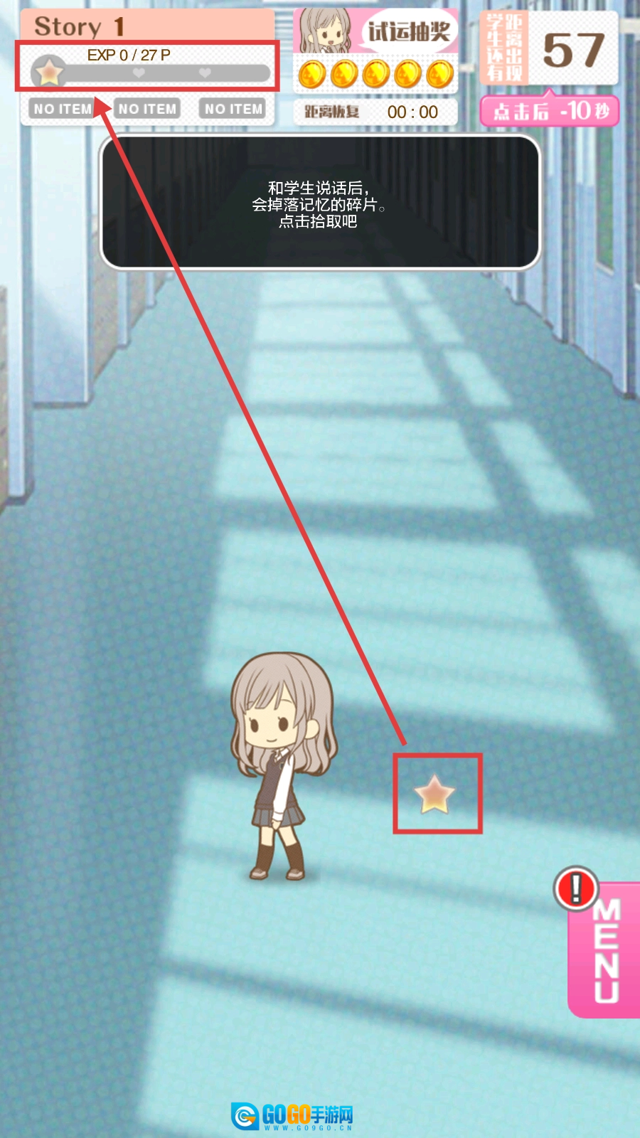 与学生对话后,点击地面星形记忆碎片,积累EXP,助力解锁剧情。