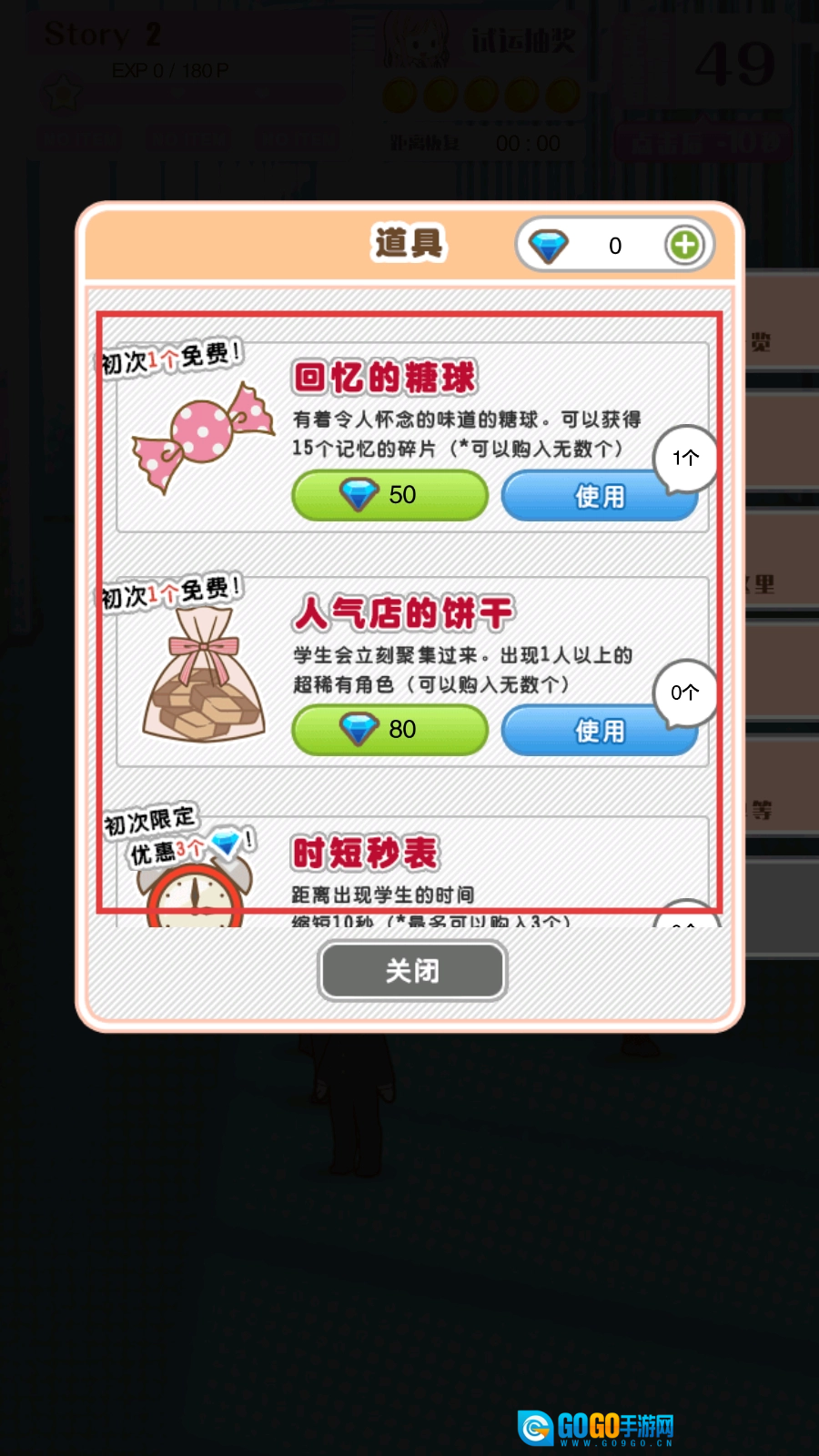 打开道具界面,依据需求选道具,如用钻石购买【回忆的糖球】,获取更多记忆碎片。