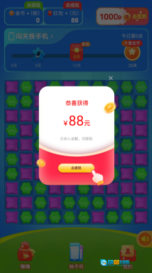 当所有方块都被消除完毕后,就能顺利通关并获得红包奖励啦。