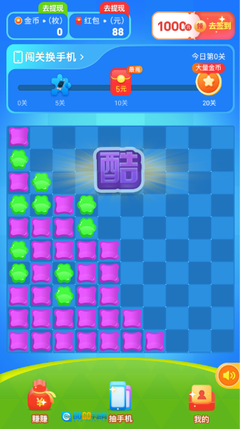 真的可行,登录游戏后能先领取一个88元的新人红包,之后通过闯关、每日签到或者完成任务的方式积累红包与金币奖励,再按照一定比例就能兑换到微信里了。