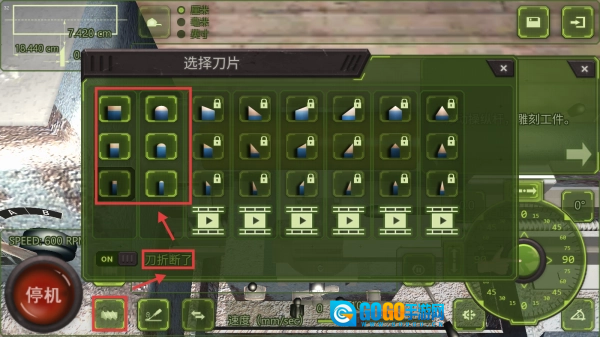 若遇【刀折断了】提示,我们可以在【选择刀片】界面,从解锁的刀片中选新刀片替换,确保加工能继续。