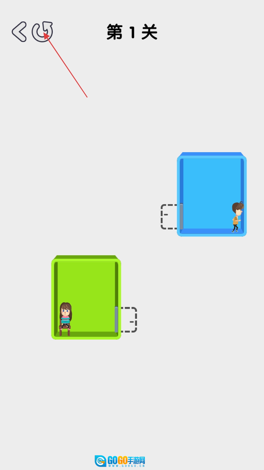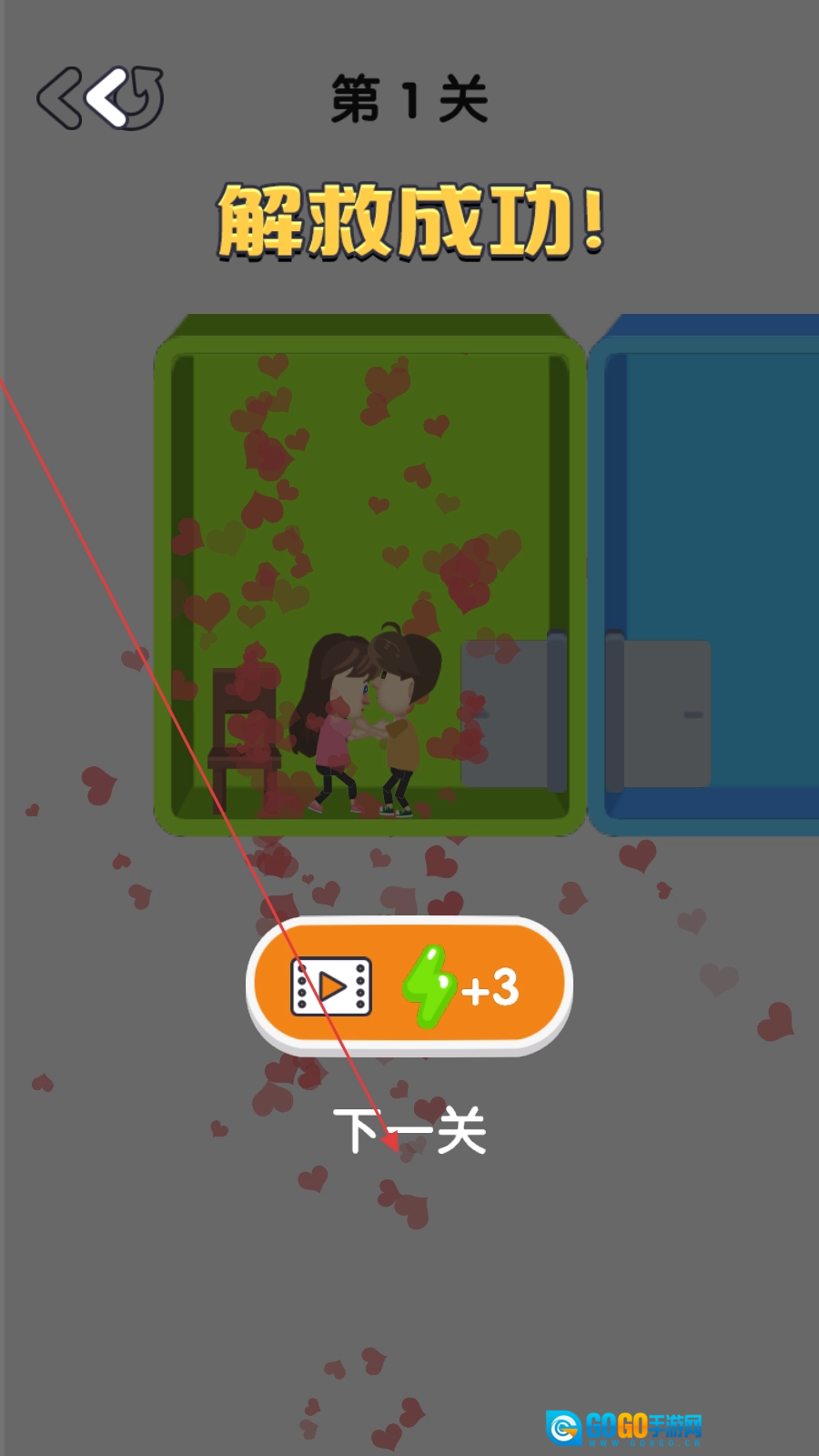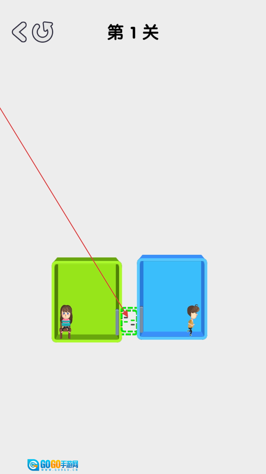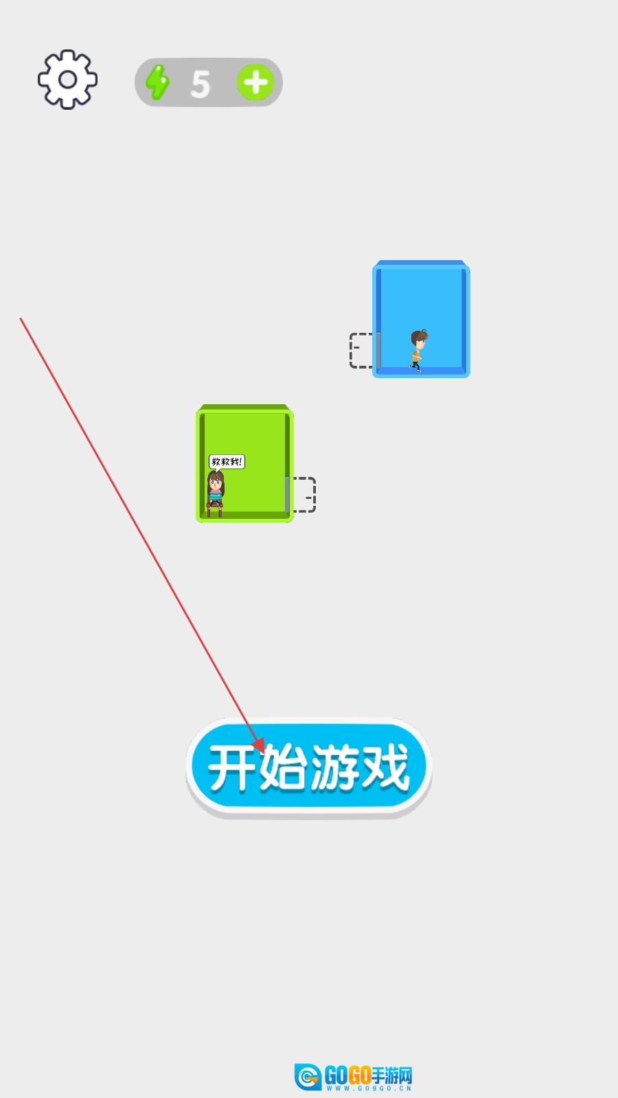 滑动屏幕让男孩走到绿色区域,解救被困女孩。