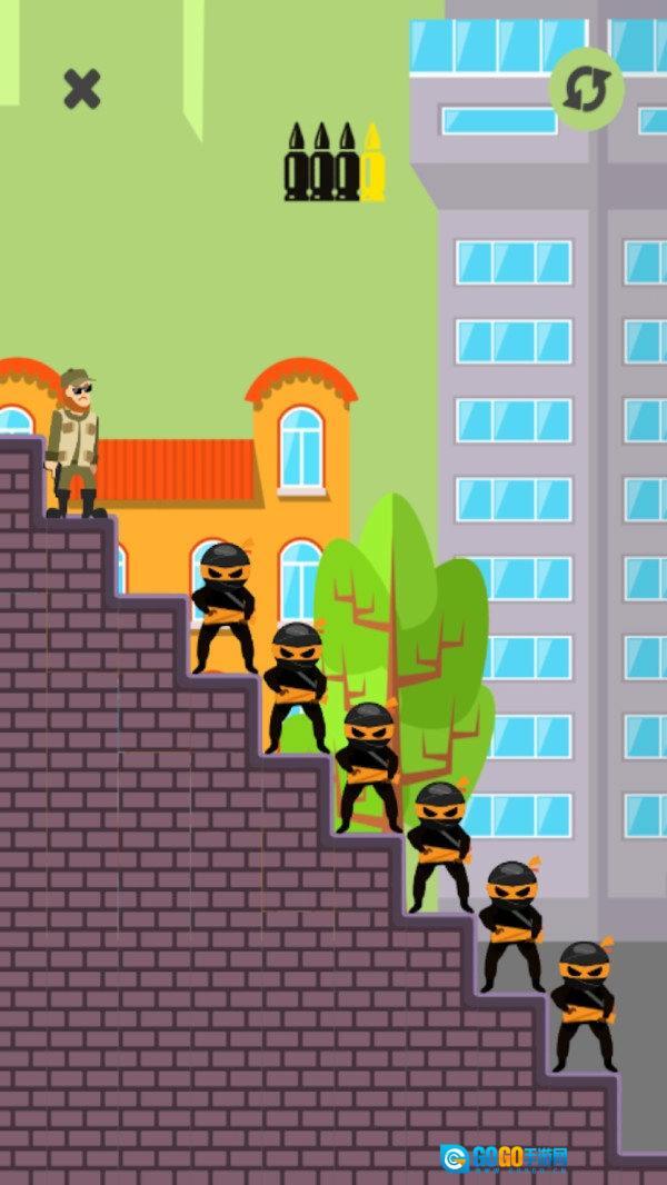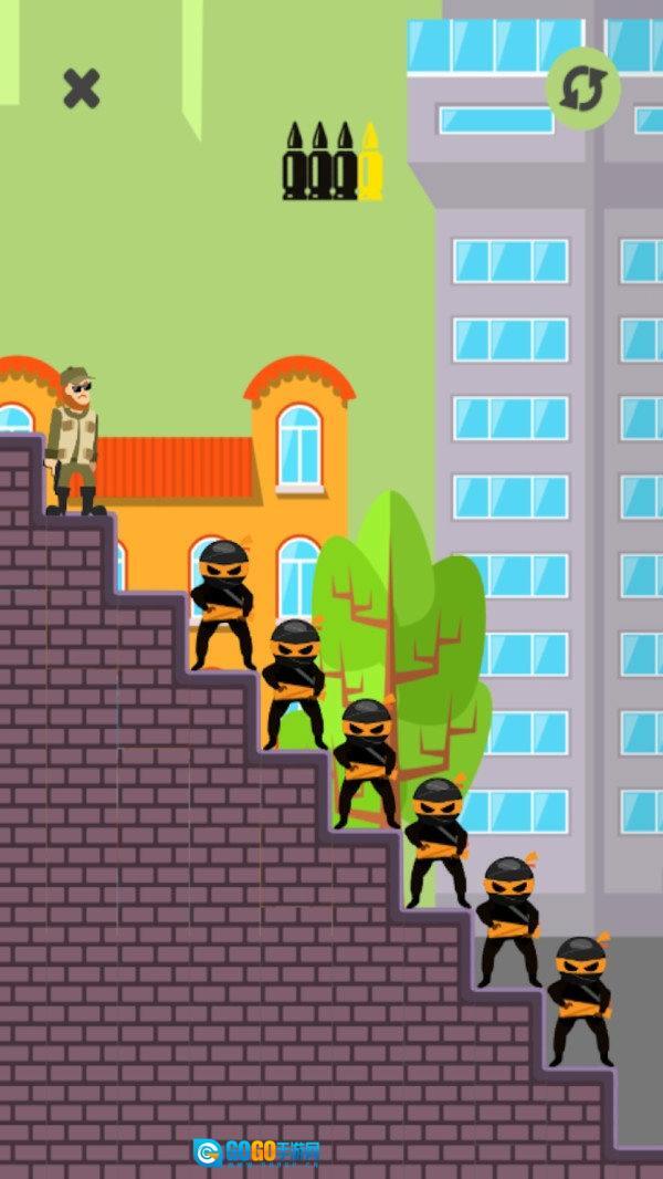 4、你的敌人更多的是忍者。使用尽可能少的子弹摧毁更多的忍者。