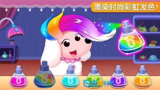 拖动剃刀为贵宾犬剃除毛团,操作卷发器烫卷毛发,戴上星形发夹,完美!有新顾客咯,拿起彩色笔刷上色蜗牛壳,挑选项链打扮蜗牛吧。