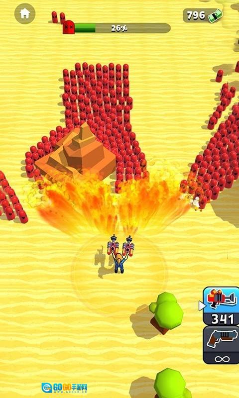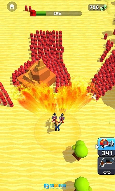 2、许多敌人向你冲来,用你的火力来掩盖他们,将他们击倒,并获得丰富的游戏道具来增强你的火力
